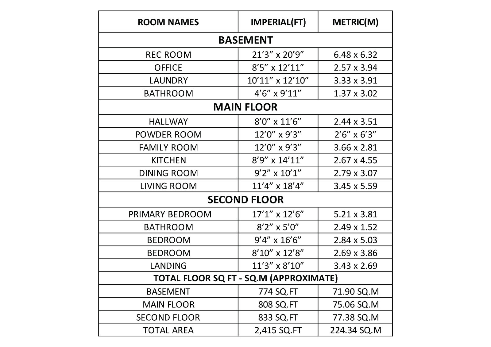 Room Measurements